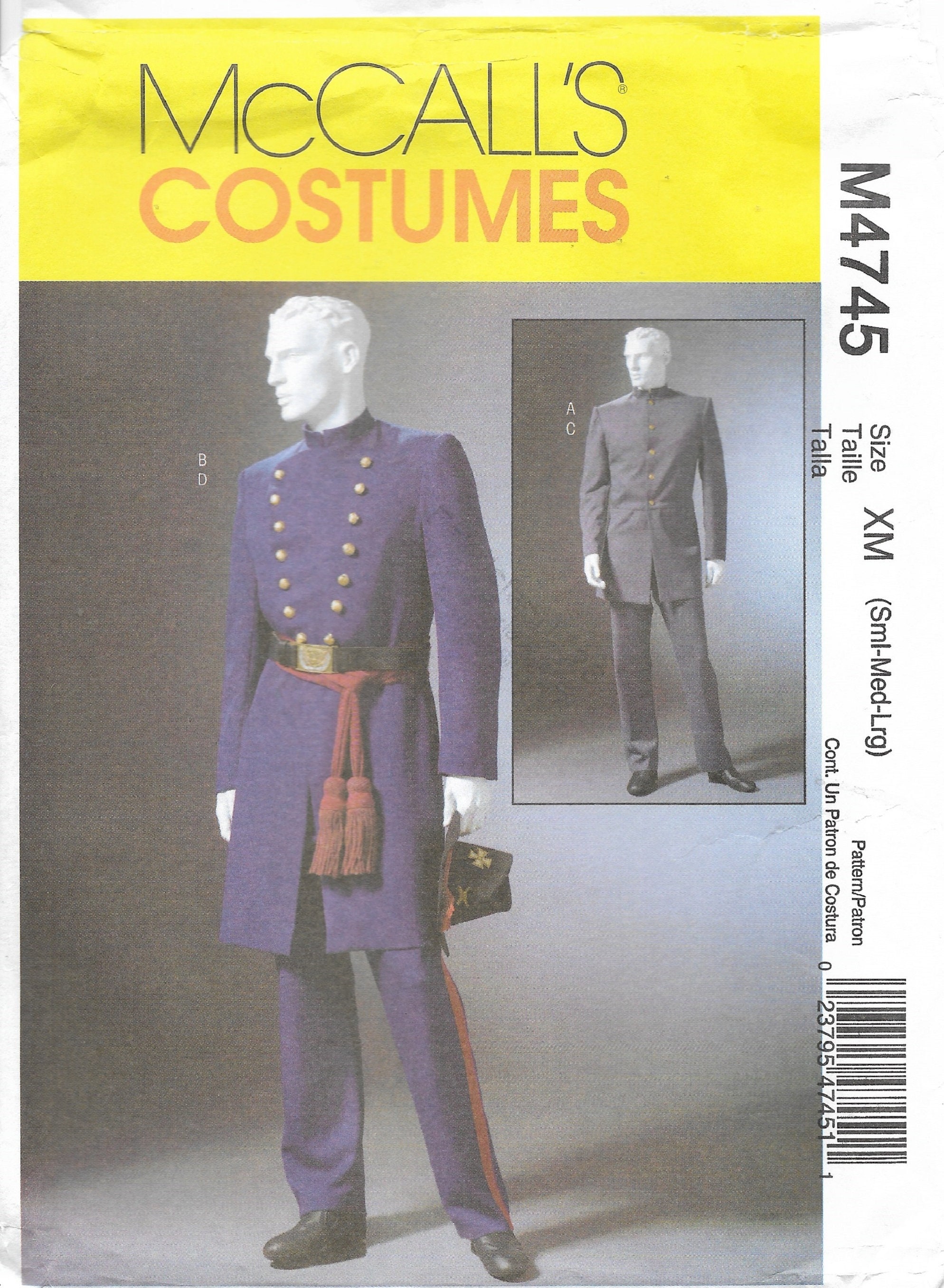 Mccall S Costumes M4745 Men S Civil War Costume Sewing Pattern Xlg Xxl Xxxl Amazon Ca Home